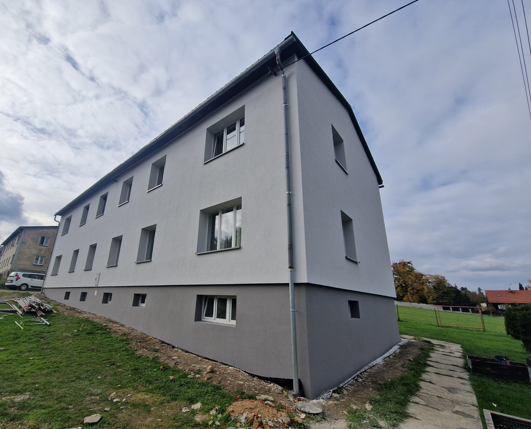 Mimo zateplení rodinných domů taky provádíme zateplení a realizaci fasád bytových domů, menších panelových domů a budov.