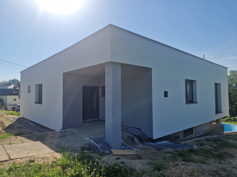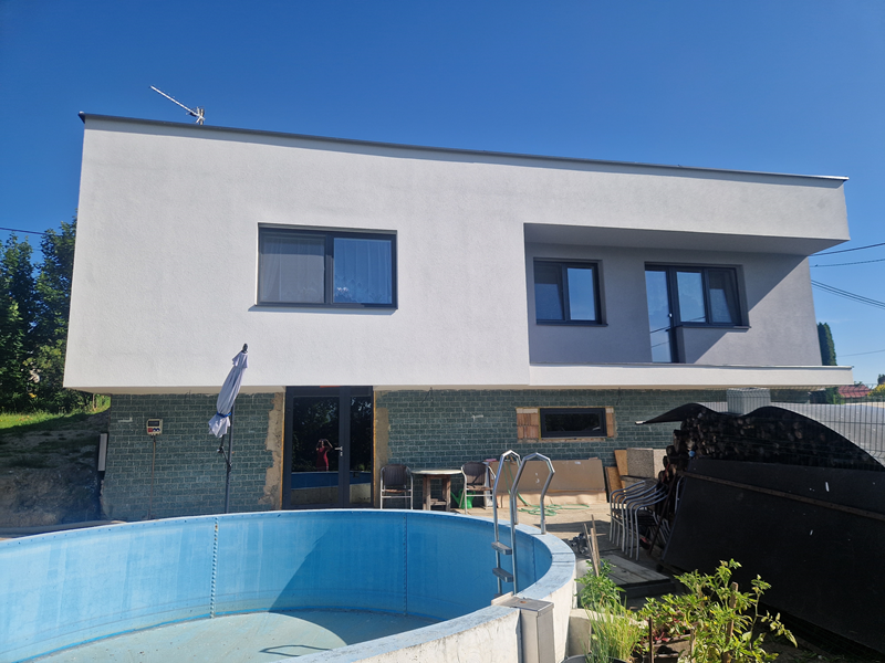 - šedý polystyren tl. 180 mm vč. silikonové omítky BAUMIT Silikon Top v odstínech 0878,0874