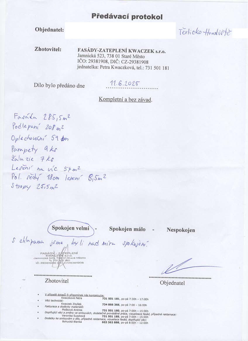 - dodávka venkovních AL parapetů vč. demontáže původních a montáže nových + bočnice