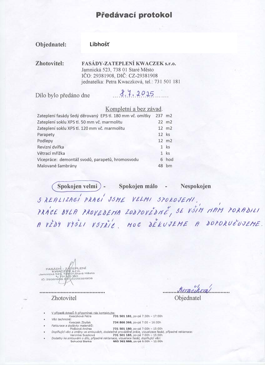 S realizací prací jsme velmi spokojeni. Práce byla provedena zodpovědně, se vším nám poradili a vždy vyšli vstříc. Moc děkujeme a doporučujeme.