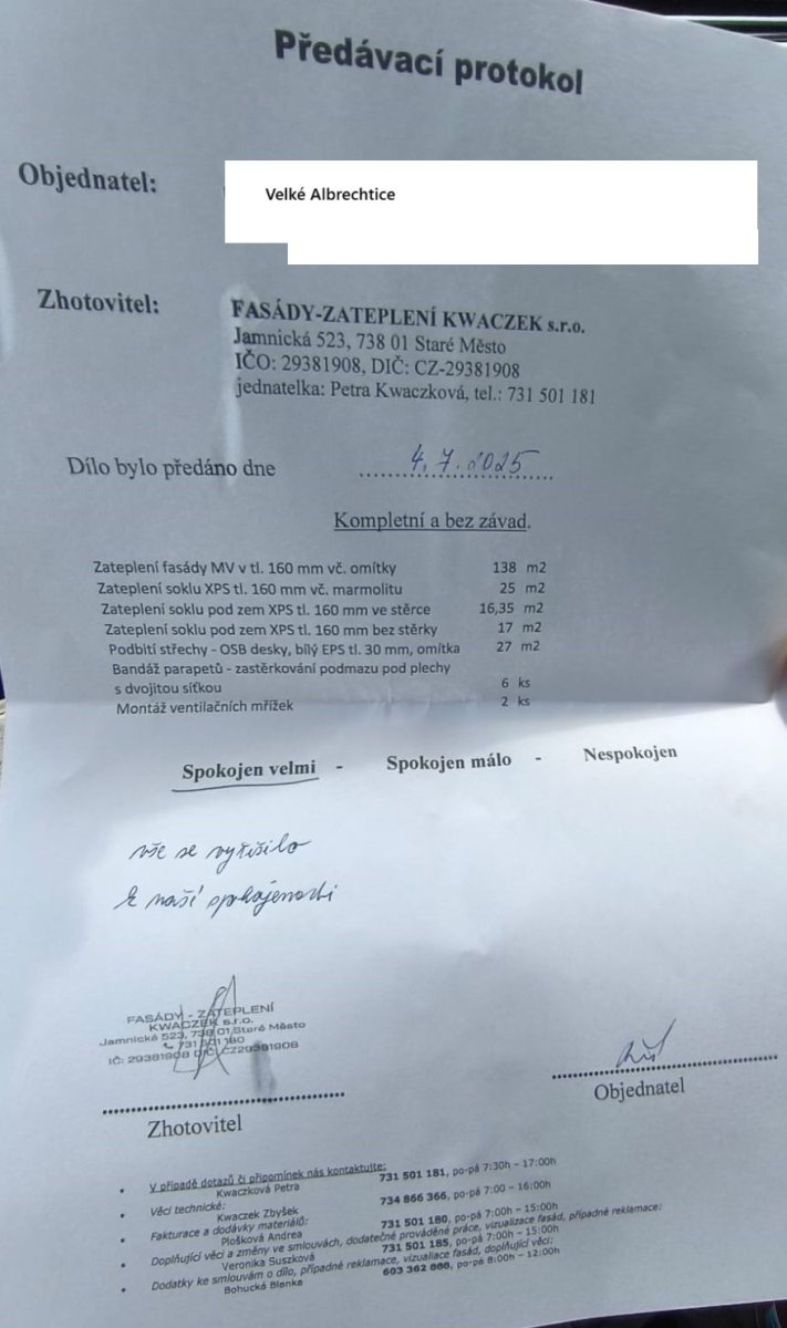 Zateplení rodinného domu - Velké Albrechtice, minerální vata tl. 160mm.