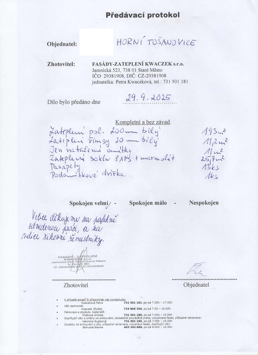 Velice děkujeme za perfektně odvedenou práci a za velice šikovné řemeslníky.