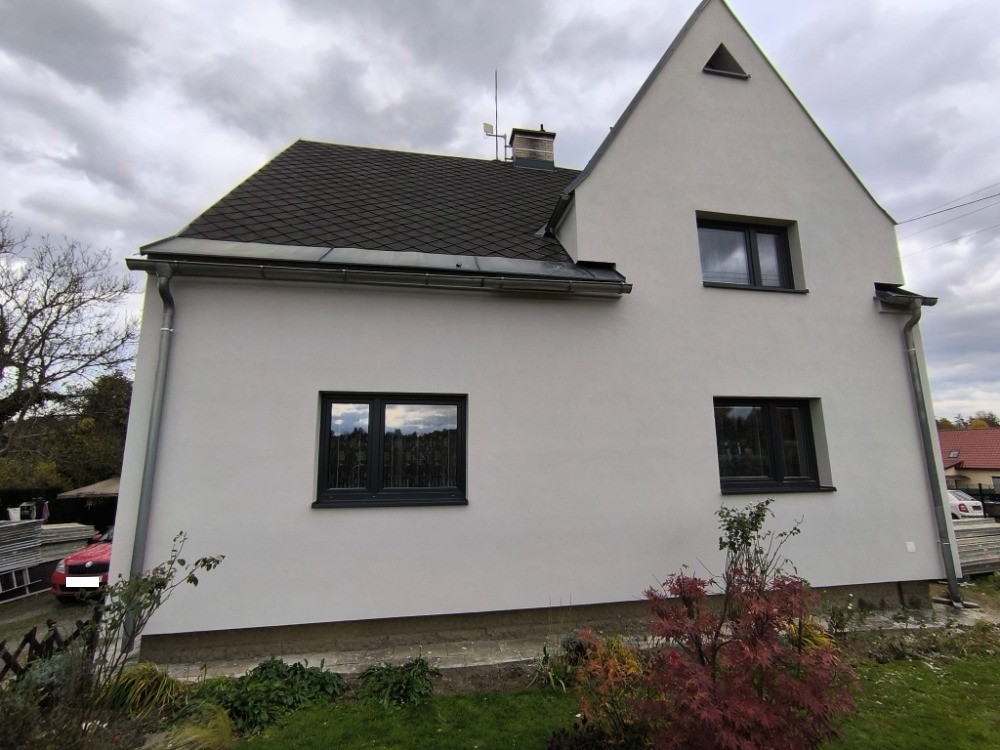 Zateplení rodinného domu - Šenov, šedý děrovaný polystyren tl. 180 mm.