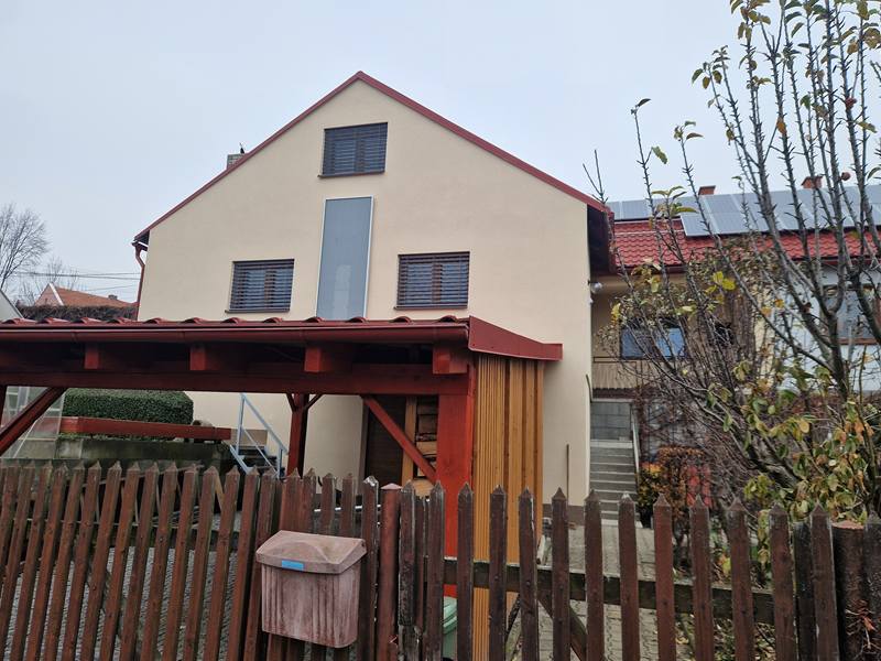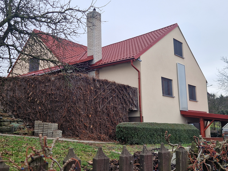 - bílý polystyren tl. 200 mm vč. silikonové omítky BAUMIT SilikonTop v odstínu 0357