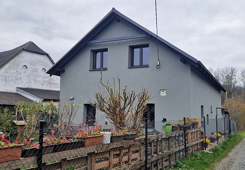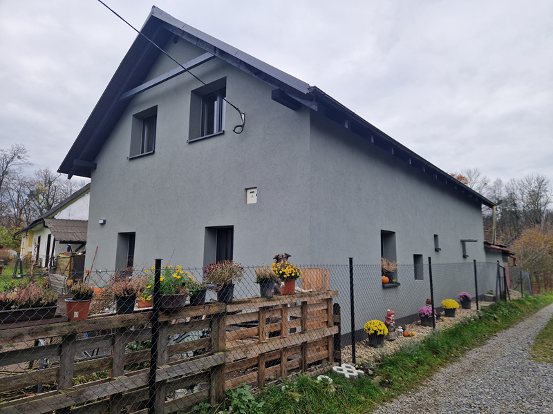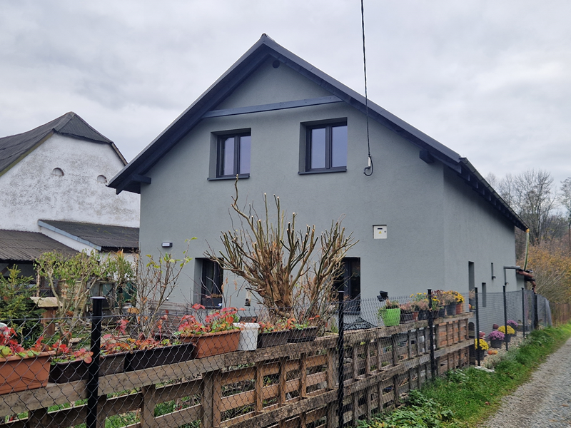 - bílý polystyren tl. 150 mm vč. silikonové omítky WEBER, zrno 1,5 mm, v odstínu SE5C