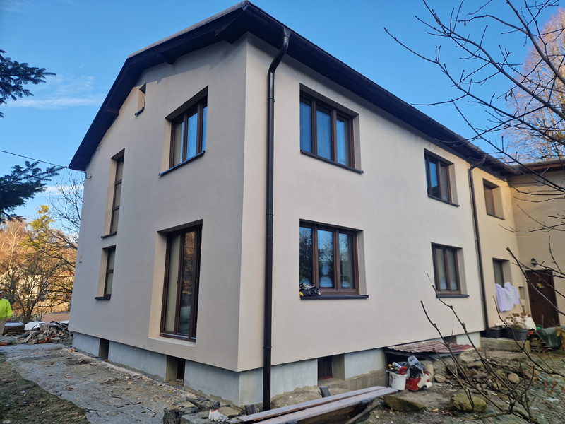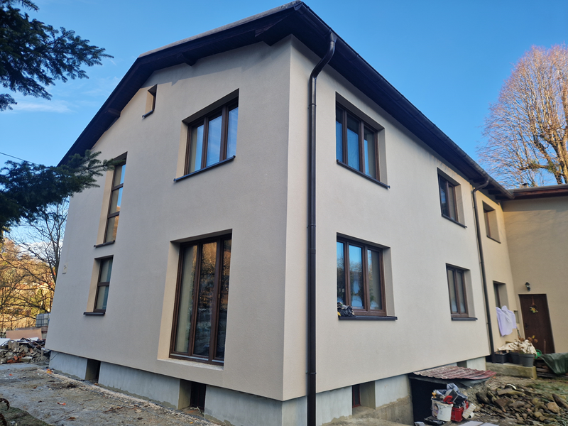 - šedý polystyren tl. 160 mm vč. silikonové omítky BAUMIT SilikonTop, zrno 1,5 mm, v odstínu 0397